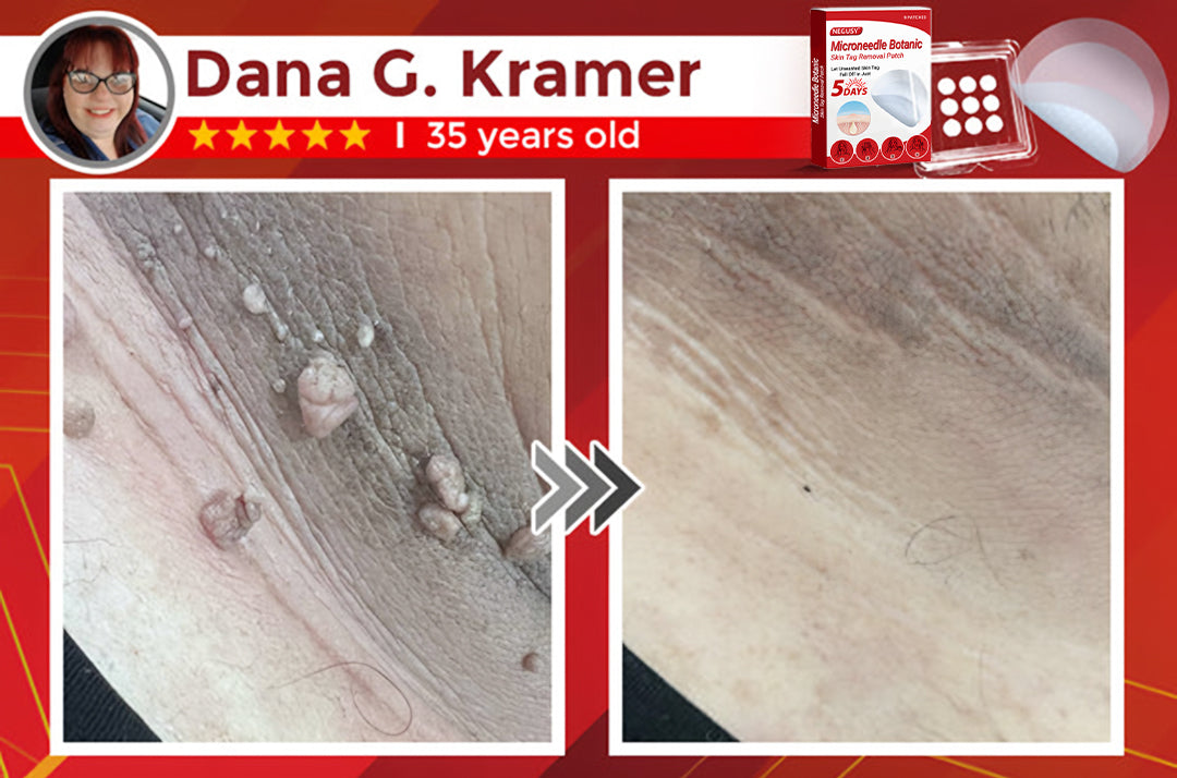 "I've had persistent skin tags on my armpit for some time and was thinking about getting laser treatment at a clinic, but it was quite expensive. Then I came across this patch online, which uses botanical ingredients believed to be effective for removing skin tags. I decided to try it, and the results have been amazing! After just two days, the tags began to soften, and by the fifth day, they were falling off naturally. Best of all, it was completely painless throughout. This patch turned out to be an affordable and effective solution for me!" - Dana G. Kramer, Wood Dale, USA